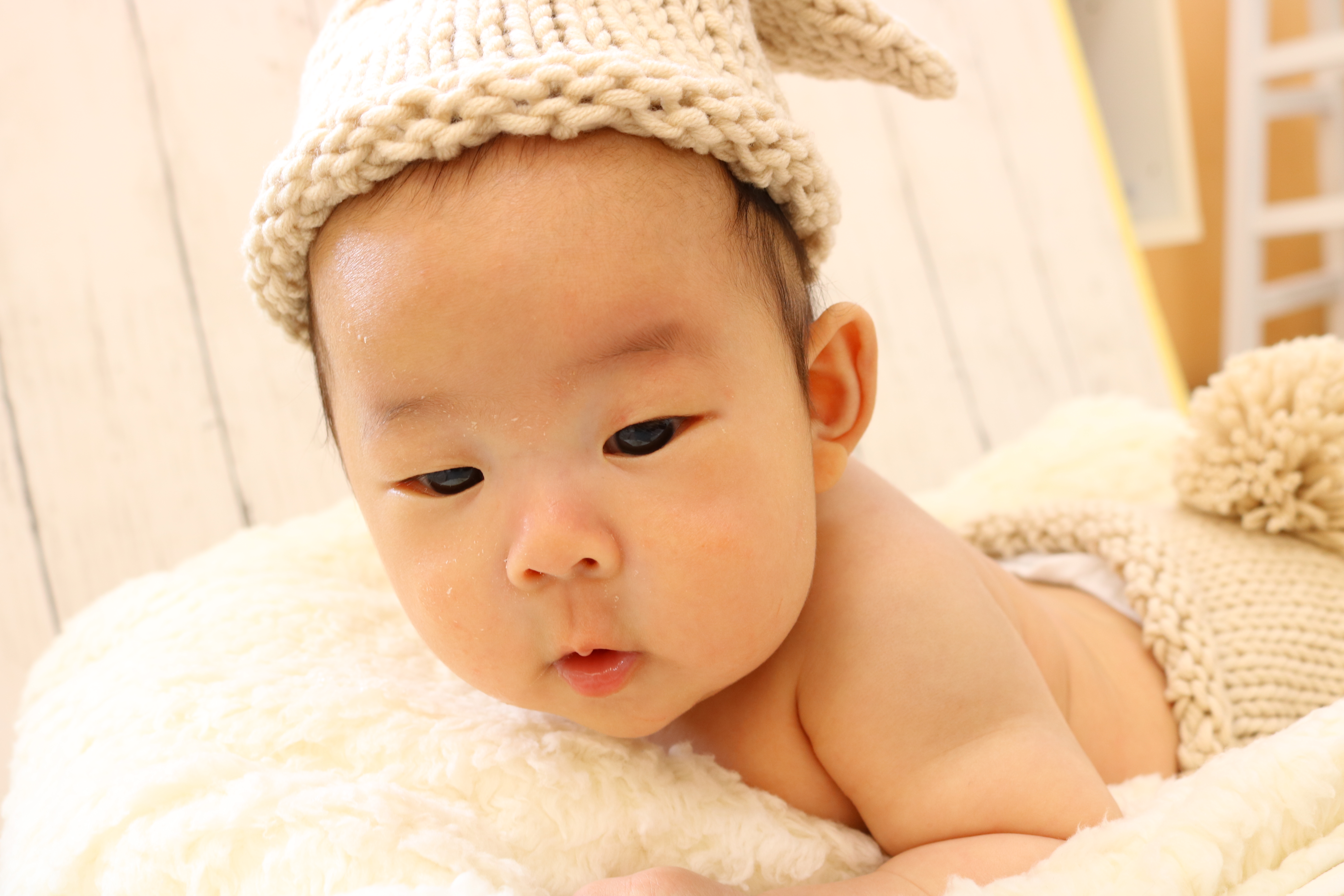 泡泡のお風呂に入って楽しんでいる姿を撮影します