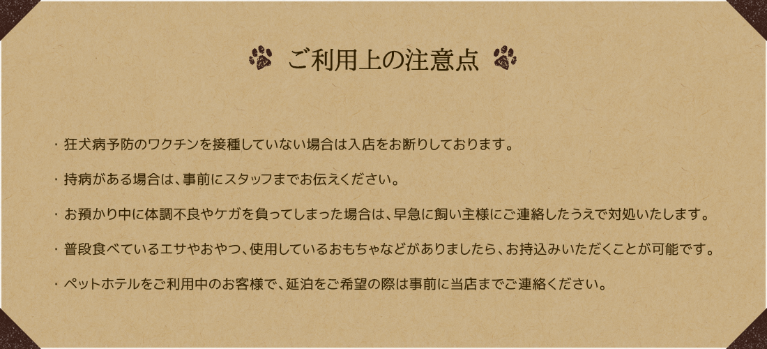 また、わんちゃんがいつも通りの生活を送れるように配慮しておりますので、どうぞご安心ください。